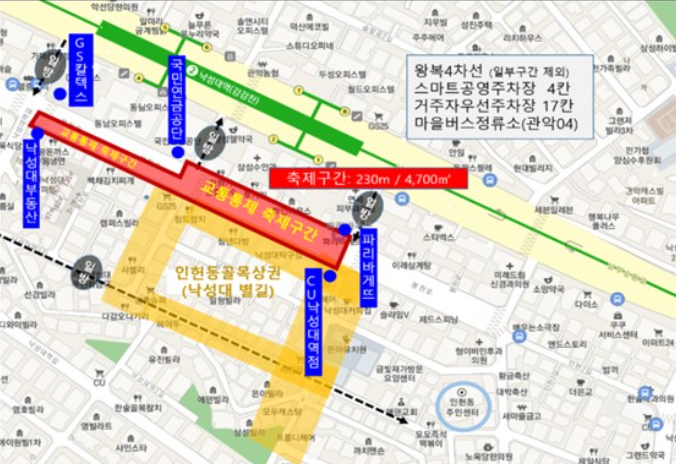 장소: 인헌동 봉천로 일대 (낙성대역 1~4번 출구 뒤편 일대)