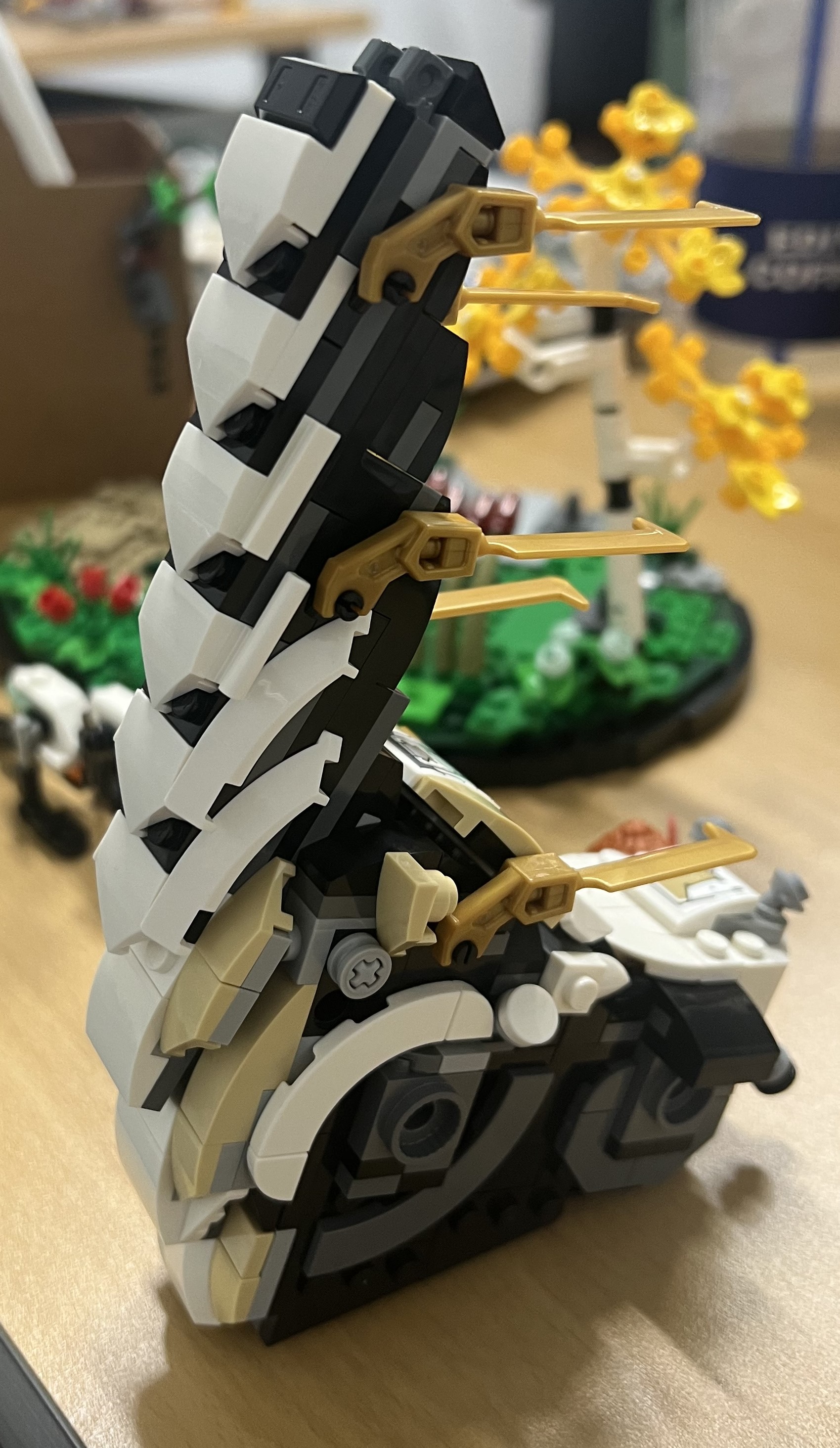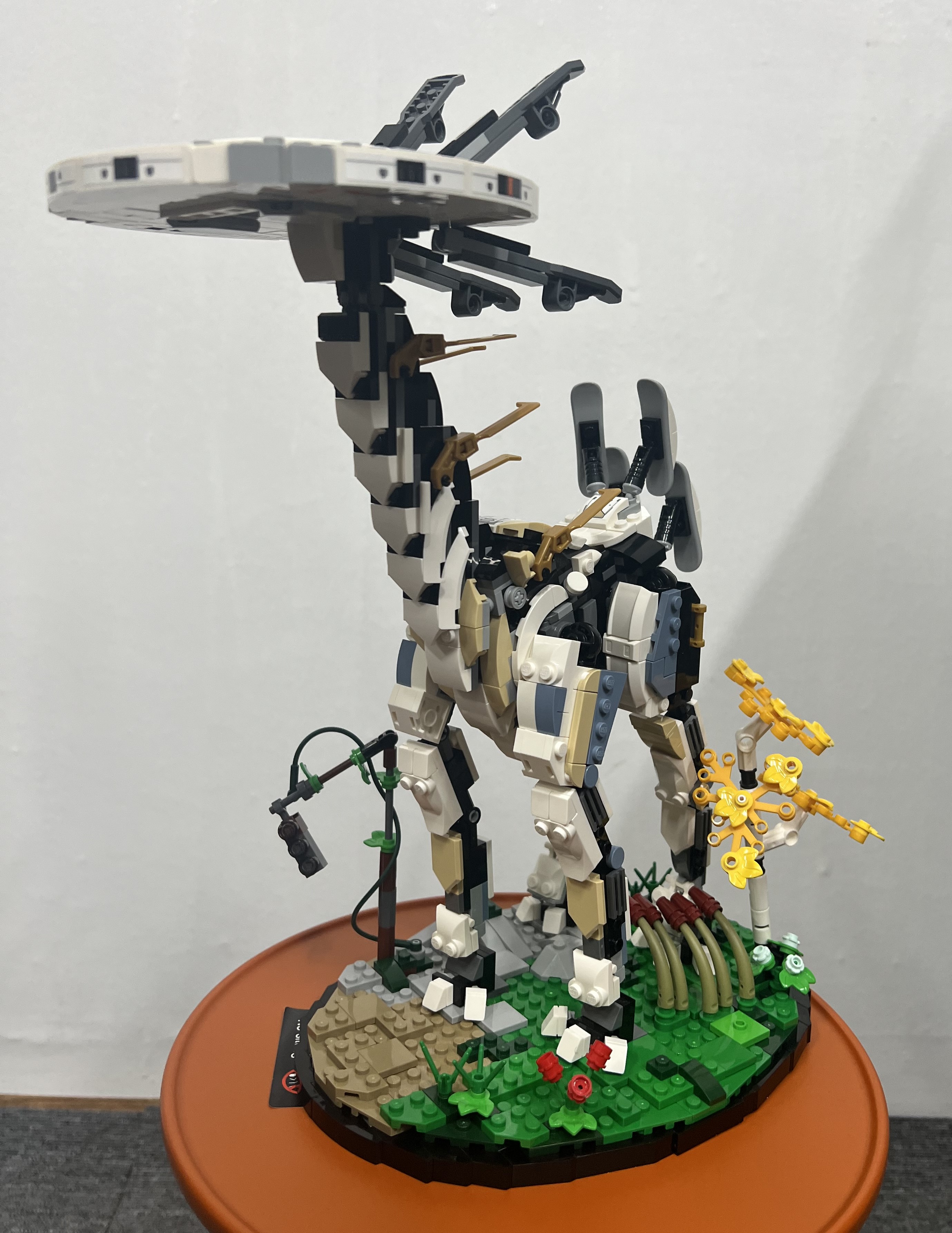 실제 게임 배경이 인류가 멸망해서 살아남은 사람들은 기계와 싸우면 아슬아슬하게 살아가는 내용인데 신호등의 표현이 깨알 같아서 좋았던 거 같습니다. 버로워도 딱 보면 알 정도로 깨알 같은 디테일들이 좋은 레고였습니다. 톨넥이라는 호라이즌 시리즈 게임에 상징 같은 기계를 조립해서 너무 재밌게 조립했습니다.