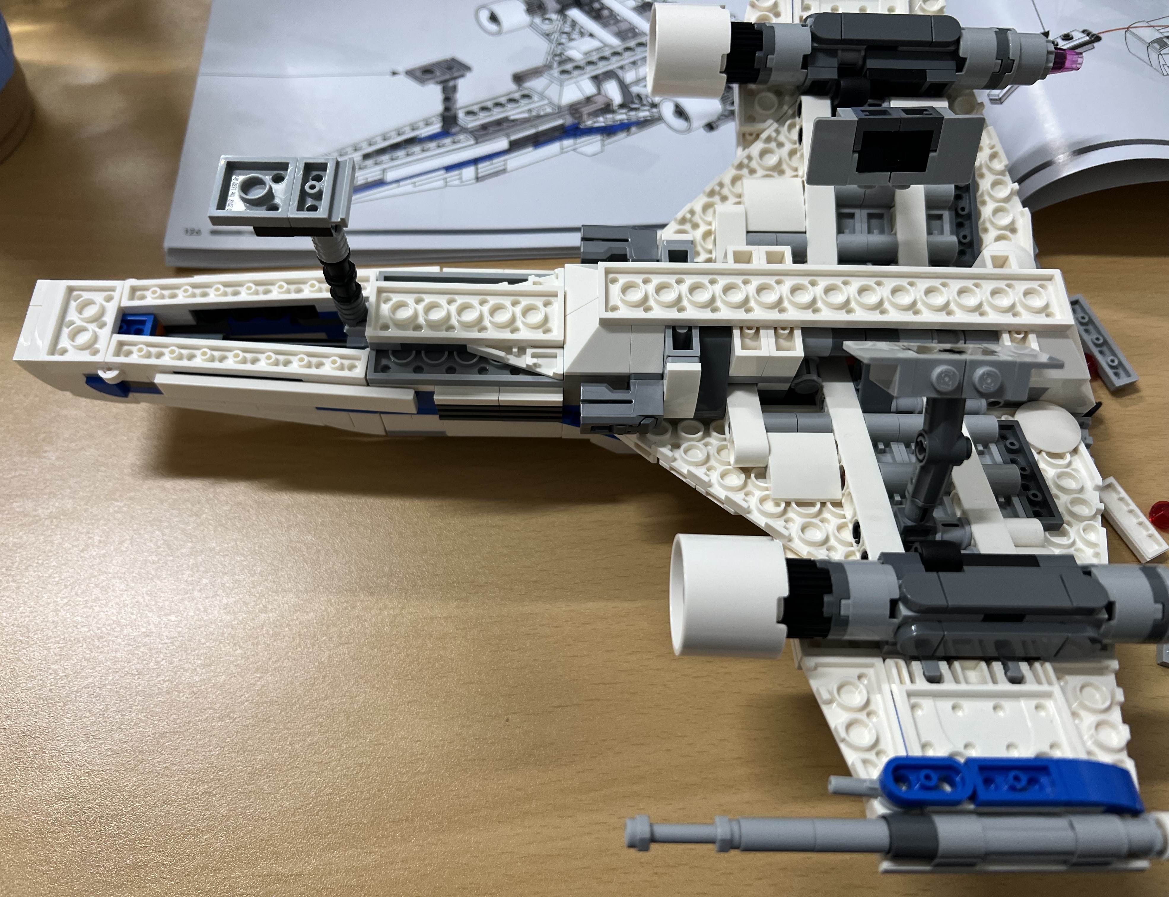 이렇게 비행선의 몸통 쪽과 날개의 뼈대를 조립해 주고 나서 날개를 따로 조립해 끼우는 방식입니다.